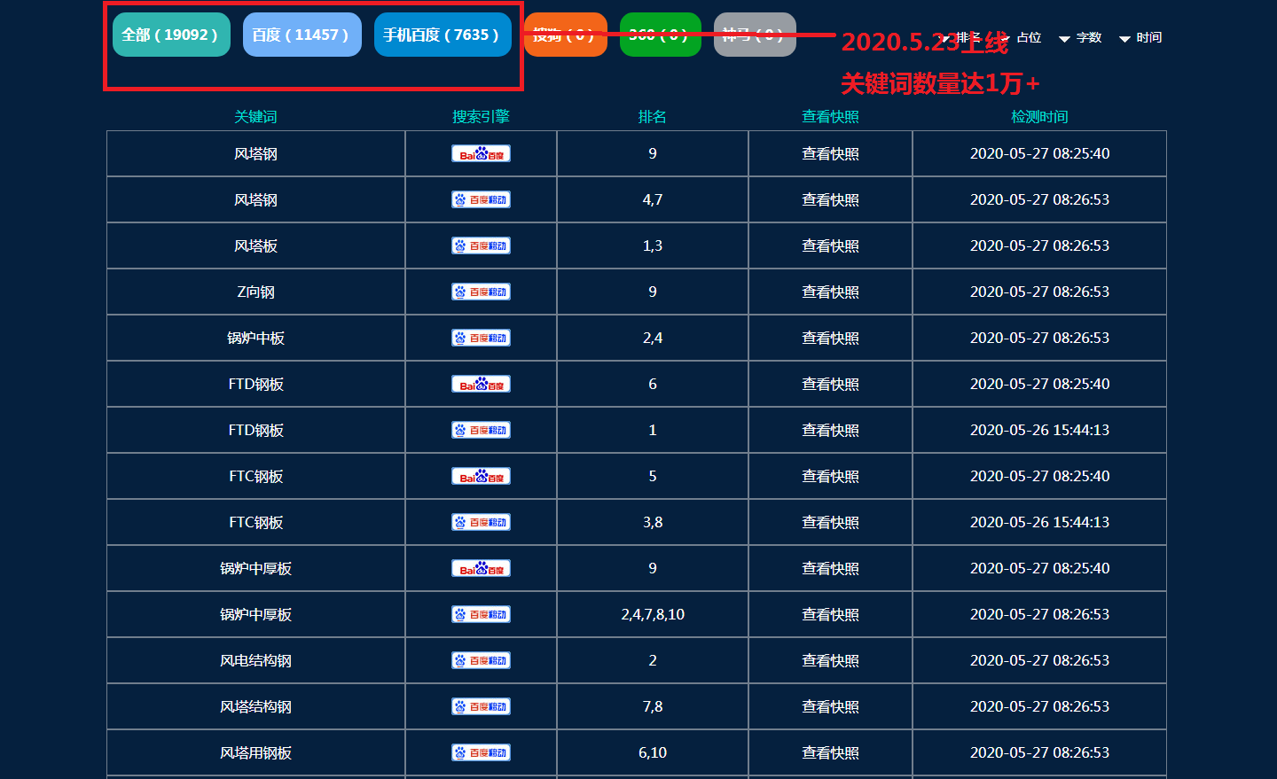 當(dāng)天提詞,隔天排名,后期可達(dá)1萬(wàn)+關(guān)鍵詞