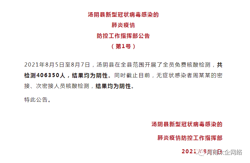 對于目前疫情的情況下 ,檢測結(jié)果全員陰性 ,無非給大家吃了“一劑強(qiáng)心劑”,湯陰大戰(zhàn)疫情,首戰(zhàn)告捷。